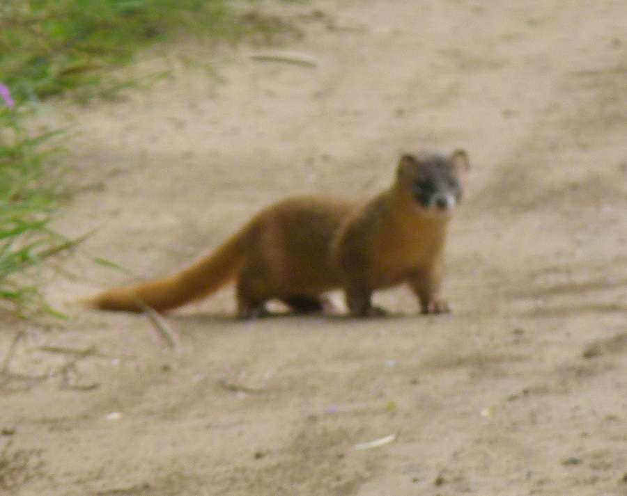 We slowly made our way along the wooded edge of the lake picking up at least 4 Wood Sandpipers, both Barn and Red-rumped Swallow and a stunning male Black-naped Oriole. But the highlight along here was a lovely encounter with a mammal, which we first suspected was a Yellow-throated Marten. However, I have been reliably informed that it is not this species (EDIT: after a bit of detective work – Claus visited the Zoological Museum of Beijing – we believe it is a Siberian Weasel. These are the elusive creatures that inhabit the hutongs of Beijing and are believed by locals to hold the power to capture and return human souls…! We gave it a wide berth just in case…)